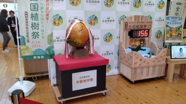 木製地球儀の引渡し式に参加【植樹祭】 令和7年12月12日(金)西条市役所にて 「ぐるっto植樹祭えひめ」木製地球儀の引渡し式に参加しました🌱 このイベントは第76回全国植樹祭開催を盛り上げるため、 愛媛県と県内20市町で木製地球儀等を巡回展示していくものです🌎✨ 本日12月12日から12月22日まで西条市役所ロビーにて展示されます。