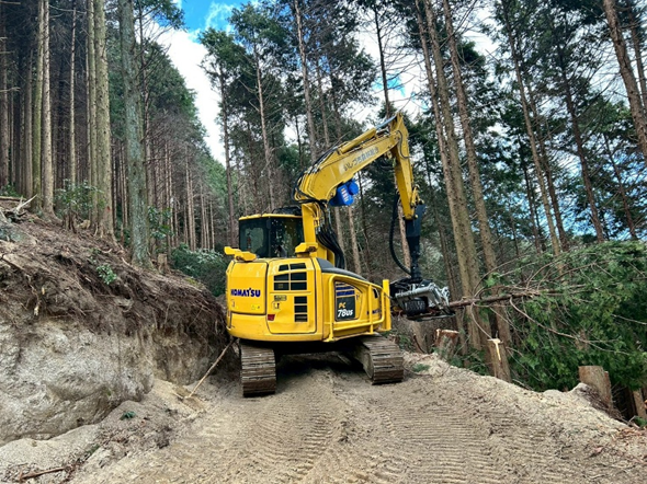 以上が、搬出間伐のおもな流れになります。整地後、検査をおこない所有者様への施業完了の報告、精算書のご提示をさせていただきます。