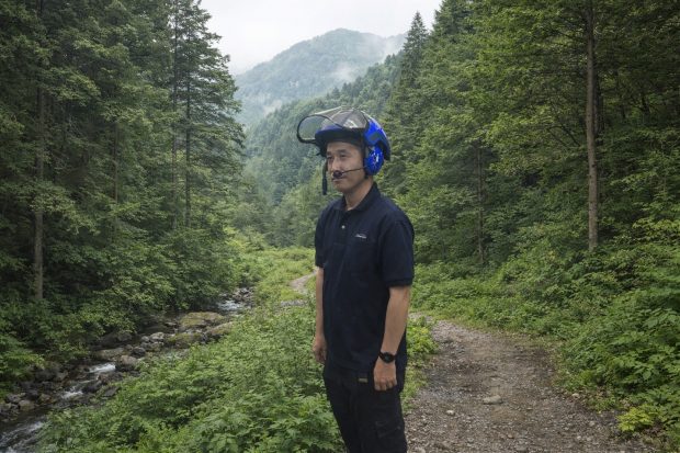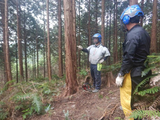 いしづち森林組合では、ファナーのBluetoothイヤーマフ付プロトスヘルメットを採用し、安全性はもちろん、作業中の連絡も取りやすい環境づくりを行っています。